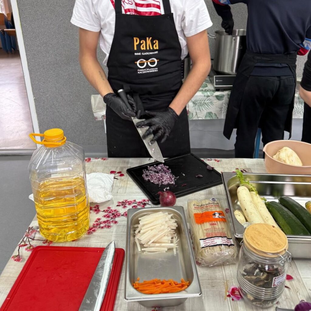 Projekt PAKA – INNE GAROWANIE to jednak znacznie więcej niż nauka gotowania czy zdobywanie kulinarnych umiejętności. To przede wszystkim przestrzeń do spotkania, rozmowy i budowania relacji opartych na wzajemnym szacunku. Każde spotkanie staramy się wykorzystywać w pełni, tworząc bezpieczną przestrzeń do poruszania ważnych tematów. Podczas warsztatów pojawiają się rozmowy o emocjach, odpowiedzialności i konsekwencjach podejmowanych decyzji. Z każdym kolejnym spotkaniem uczestnicy coraz bardziej się otwierają i chętniej dzielą swoimi doświadczeniami. Uczą się nie tylko słuchać innych, ale również uważniej przyglądać się sobie. Mamy świadomość, że dalsza droga zależy od ich indywidualnych decyzji oraz gotowości do zmiany. Naszą rolą jest towarzyszenie im w tym procesie i dawanie wsparcia wtedy, gdy jest ono potrzebne. Dzięki temu ta praca ma sens i jasno określony kierunek.