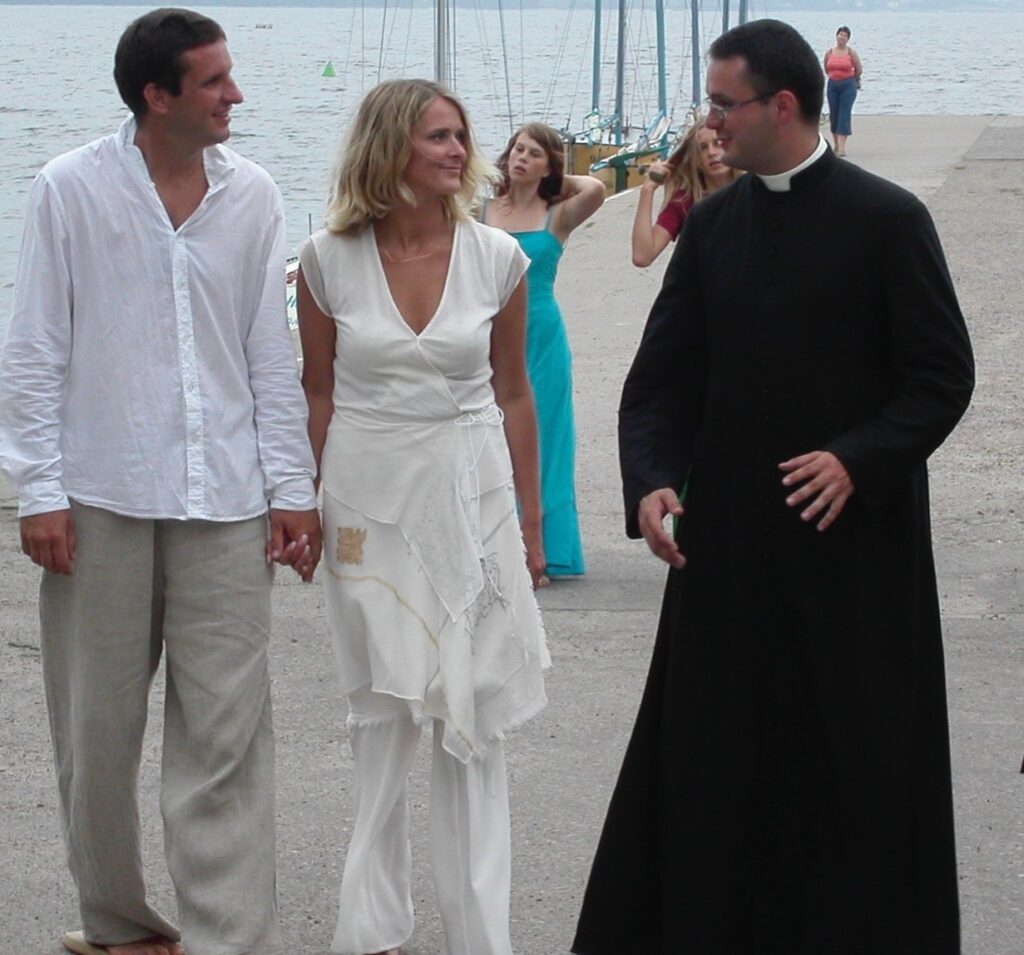 2003 r.: Małgorzata Regosz-Kaczkowska z ks. Janem Kaczkowskim oraz mężem Filipem Kaczkowskim.