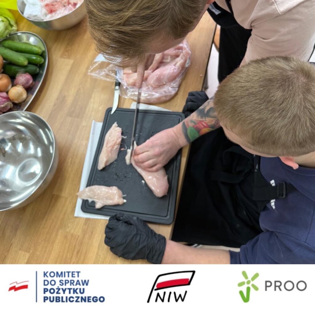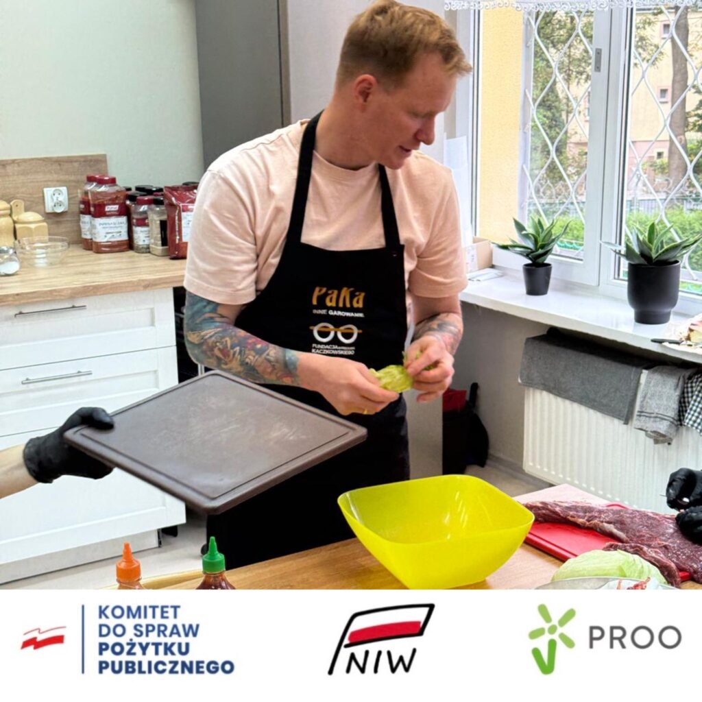 Podczas gotowania panowała przyjemna, pracowita atmosfera, a chłopcy z zaangażowaniem wykonywali powierzone im zadania. Patryk, pracując razem z nimi, mógł na bieżąco dzielić się swoją wiedzą i doświadczeniem. PAKA to nie tylko warsztaty. To historia odwagi, bliskości i drugiej szansy. Przez ostatnie 2 dni, gotując razem, można było zobaczyć, jak te wartości przekładają się na codzienne działania. Zapach gotującego się jedzenia, dźwięki krojenia i mieszania – wszystko to tworzyło obraz zwyczajnej, dobrej pracy.
