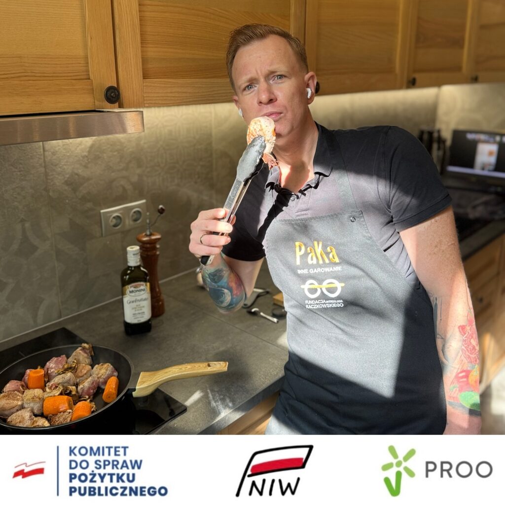 Powtórzenie przepisu pozwoliło niektórym chłopcom utrwalić nabytą wcześniej wiedzę i udoskonalić technikę. W PACE dbamy o równość od pierwszego momentu – te same fartuchy, te same przepisy, takie samo podejście do każdego. Patryk Galewski łączył się z chłopcami z domu, tworząc przestrzeń, w której liczy się uważność, rozmowa i wzajemny szacunek. Jego spokojny głos i jasne instrukcje pomagały uczestnikom skupić się na zadaniu. Chłopcy pracowali w swoim tempie, ale zawsze mogli liczyć na pomoc, gdy coś sprawiało im trudność. Dziś, podobnie jak ostatnio, aromat chili con carne unosił się w warsztatowni, tworząc znajomą i przyjemną atmosferę. Praca z już znanym przepisem dawała im pewność siebie i poczucie kompetencji.
