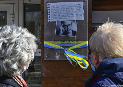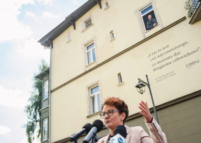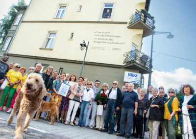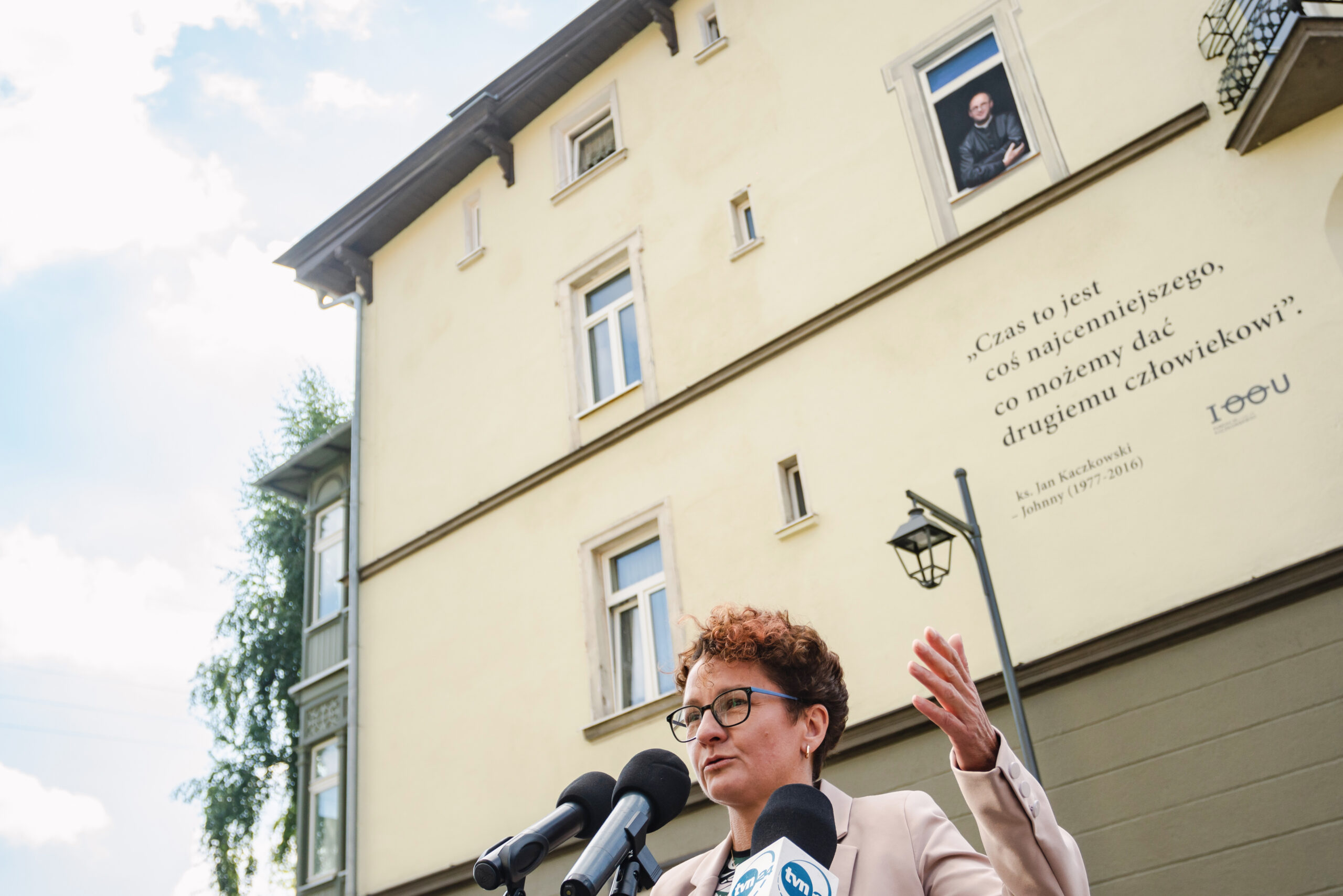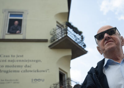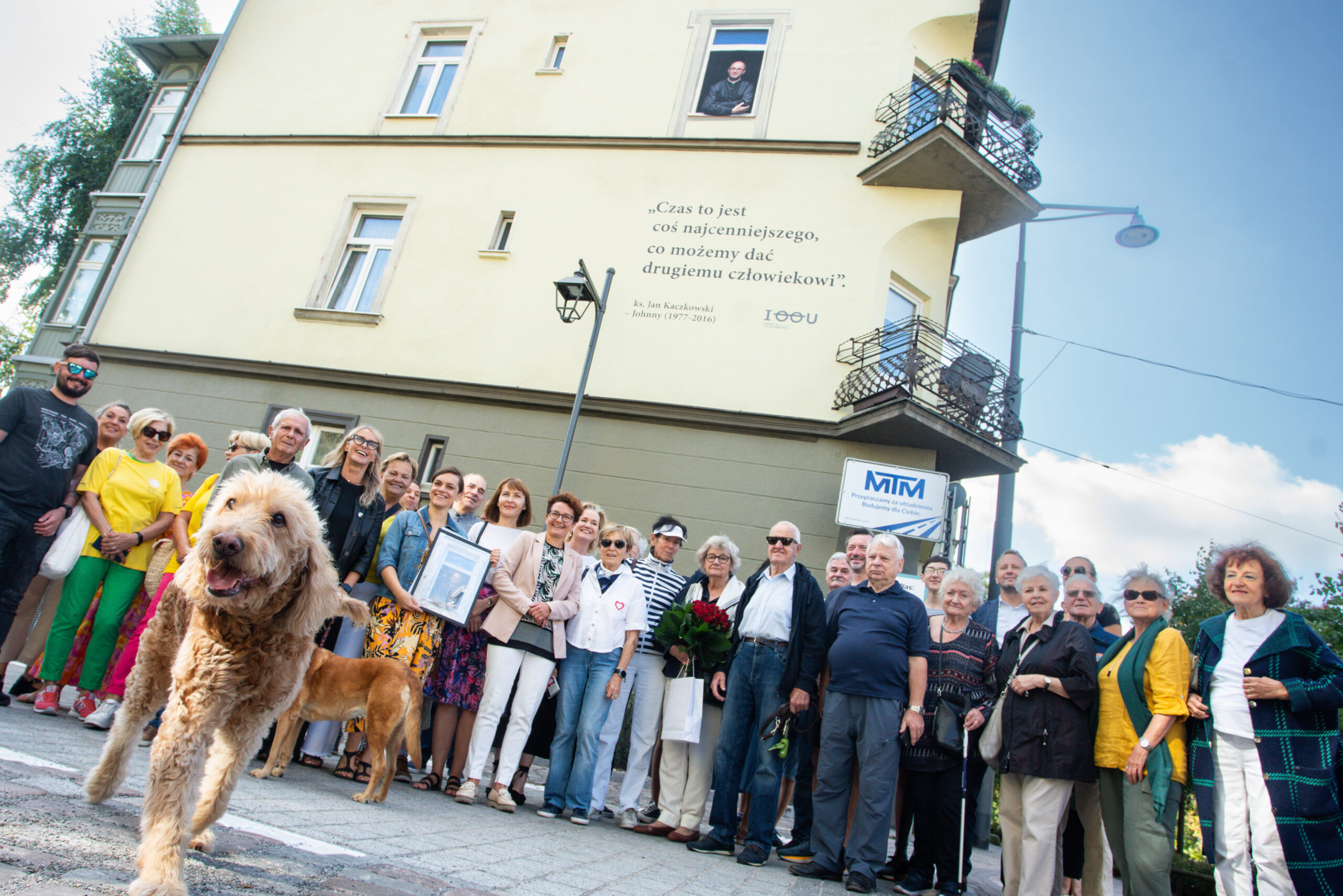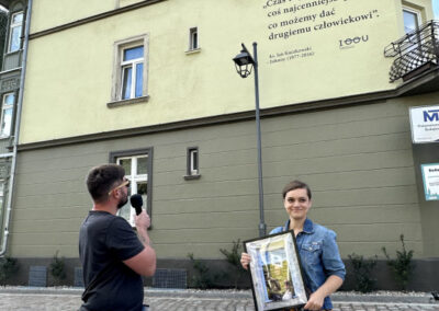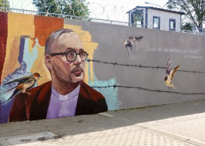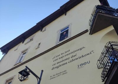 Ks. Jan Kaczkowski spoglądający z okna na II piętrze sopockiej kamienicy. Pod spodem cytat: Czas to jest coś najcenniejszego, co możemy dać drugiemu człowiekowi. Tak wygląda mural, który powstał z inicjatywy naszej Fundacji. Jego pomysłodawczynią była p. Ewa Hirsz – mieszkanka kamienicy, a wykonawcami – zdolni artyści z firmy Wake Up Time. Mural inspirowany jest zdjęciem autorstwa Damiana Kramskiego.