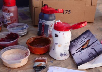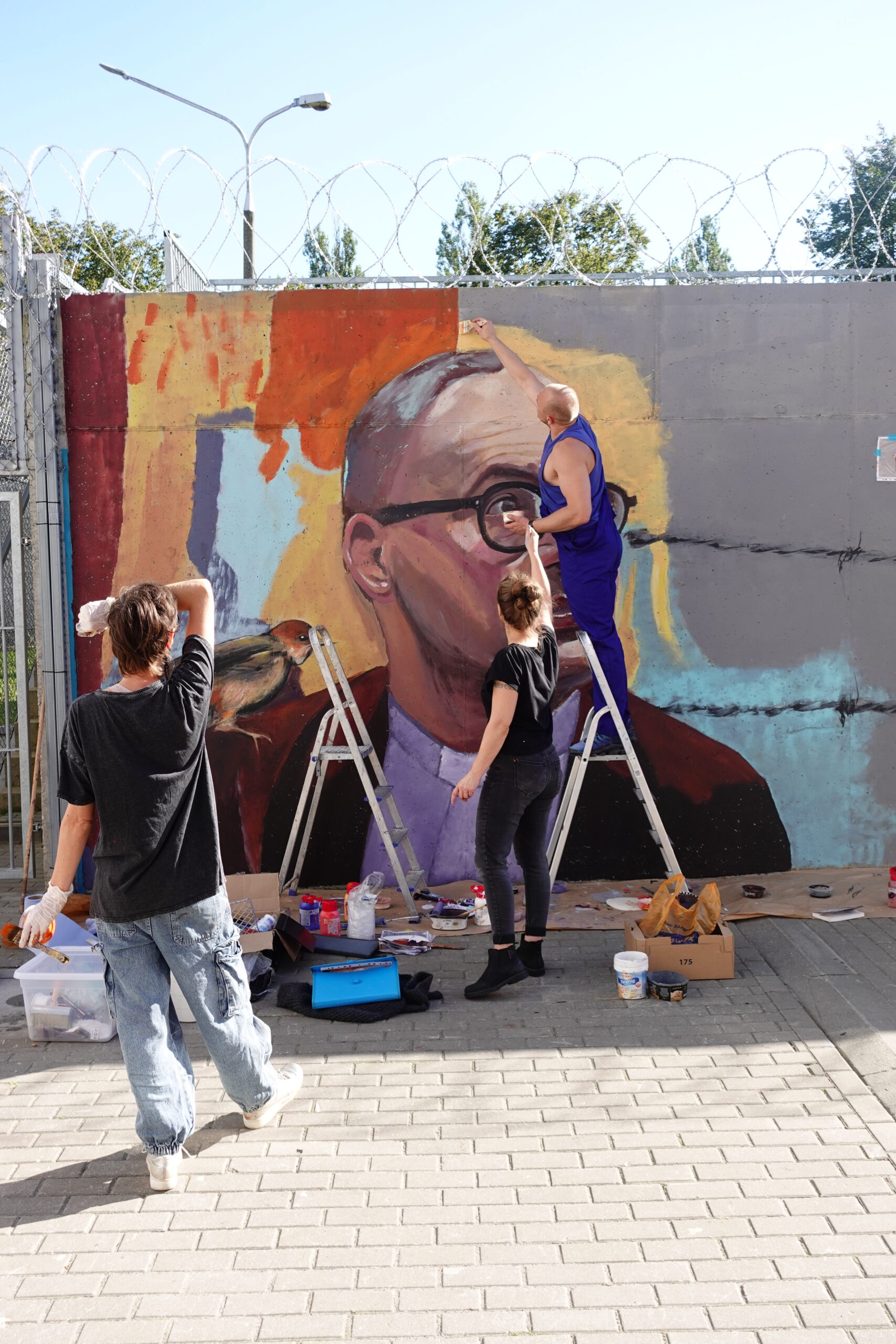 Prace nad muralem trwały 4 dni, około 40 godzin. Za jego wykonanie odpowiedzialni są: 2 malarki oraz 2 pomocników. Użyto: 20 litrów farby, 40 kolorów, 6 małych pędzli, 4 duże, 2 ławkowce oraz kilka wałków. Szablony, których użyto do realizacji muralu, zostały przekazane na ręce Fundacji im. ks. Jana Kaczkowskiego.