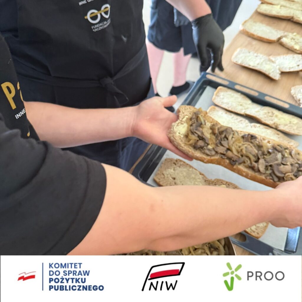 Podczas dzisiejszych warsztatów online w Zakładzie Poprawczym w Głogowie na talerzach pojawiły się zapiekanki – proste, ale symboliczne danie. Chłopcy komponowali własne wersje, ucząc się nie tylko gotowania, ale i współdziałania. Każdy wybierał ulubione składniki i układał je na kromkach chleba, co wymagało pewnej decyzji i precyzji.